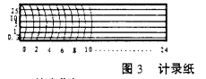 記錄紙其長度和寬度根據(jù)記錄設(shè)備要求,其橫坐標(biāo)可以設(shè)計(jì)成以小時(shí)為單位,也可以設(shè)計(jì)成以天為單位,可以根據(jù)用戶要求設(shè)計(jì)成不同型式,其縱坐標(biāo)也是根據(jù)流量公式Q=CHN計(jì)算得到,量程可自己選擇,其樣式可參見圖3。