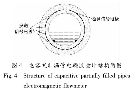 ②電容式非滿(mǎn)管污水廠(chǎng)出水用電磁流量計(jì)h。電容式非滿(mǎn)管污水廠(chǎng)出水用電磁流量計(jì)結(jié)構(gòu)簡(jiǎn)圖如圖4所示。、檢測(cè)信號(hào)電極 發(fā)送信號(hào)電