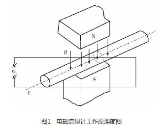 油田污水流量計(jì)廠家是利用法拉*電磁感應(yīng)定律設(shè)計(jì)的流量測(cè)量?jī)x表,用于測(cè)量導(dǎo)電液體的體積流量。根據(jù)法拉*電磁感應(yīng)定律,當(dāng)導(dǎo)體切割磁力線(xiàn)運(yùn)動(dòng)時(shí),導(dǎo)體內(nèi)將產(chǎn)生感應(yīng)電動(dòng)勢(shì)Ex(圖1),方向根據(jù)右手定則確定,感應(yīng)電動(dòng)勢(shì)Ex的大小與磁場(chǎng)的磁感應(yīng)強(qiáng)度B、傳感器管道的內(nèi)徑D和流過(guò)導(dǎo)電液體的流速V成正比,B、D、V三者相互垂直,即Ex=BDV。