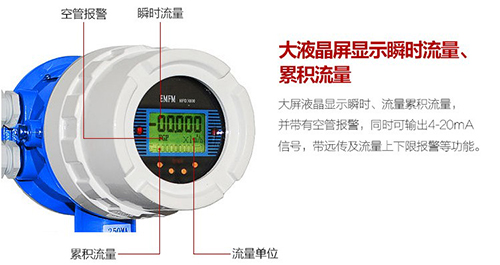 7、為雙向測量系統,內裝三個積算器:正向總量、反向總量及差值總量;可顯示正、反流量,并具有多種輸出:電流、脈沖、數字通訊、HART;