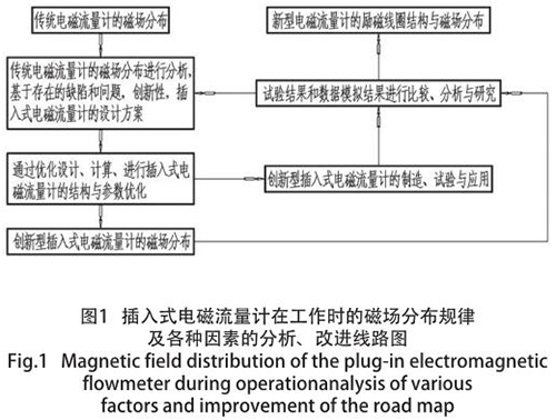 煤層注水流量計(jì)因其特殊的結(jié)構(gòu)形式,致使其抗干擾能力較弱、準(zhǔn)確度偏低以及瞬時(shí)流量波動(dòng)過大等不良現(xiàn)象,但便于安裝、造價(jià)低廉、普遍應(yīng)用于大管道等特點(diǎn)而存在。為了發(fā)揮其優(yōu)勢(shì),消除其不利因素,對(duì)其內(nèi)部結(jié)構(gòu)及其相關(guān)技術(shù)參數(shù)進(jìn)行優(yōu)化設(shè)計(jì),從而使其準(zhǔn)確度能夠達(dá)到 ±1% FS,使抗干擾能力得到極大地增強(qiáng)。本文主要通過優(yōu)化設(shè)計(jì)、選擇材料和試驗(yàn),使煤層注水流量計(jì)的穩(wěn)定性和準(zhǔn)確度大幅度提高,并提出解決措施,對(duì)實(shí)際應(yīng)用具有參考價(jià)值。分析與研究程序圖如圖 1 所示。
