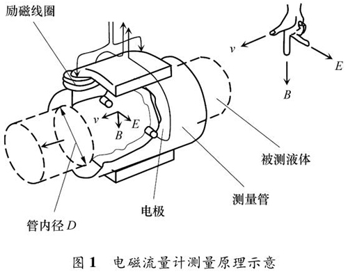液體流量計的測量原理如圖 1 所示。根據法拉*電磁感應定律,導電液體在磁場中流動會產生電動勢 E,它與磁感應強度 B、導電液體平均流速 v 成一定比例關系: