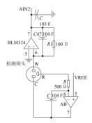 將電壓值放大2 000 ~3 000 倍,方便 A/D 轉(zhuǎn)換的同時還可提升檢測的準(zhǔn)確度。基于 SO 2 -2000 傳感器的工作性質(zhì),煙氣中二氧化硫與傳感器進(jìn)行氧化反應(yīng)的過程中,因形成輸出電流而使工作電極與其電勢差出現(xiàn)變化,電勢差過大將造成檢測結(jié)果出現(xiàn)較大誤差。因此 SO 2 -2000 傳感器中采用運(yùn)算放大器連接工作電極和參考電極,工作電極與參考電極間的電勢差利用運(yùn)算放大器的負(fù)反饋?zhàn)饔脤?shí)現(xiàn)穩(wěn)定。