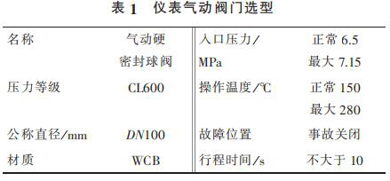 1) 蒸汽計量流量計出口管線總閥泄漏無法在線處理,導致氣化爐停車。在入氣化爐根部增加 2 臺儀表氣動閥門,要求每月進行 2 次開、關(guān),防止閥門出現(xiàn)卡塞現(xiàn)象。 新增 2 臺儀表氣動閥門相關(guān)參數(shù)見表 1。