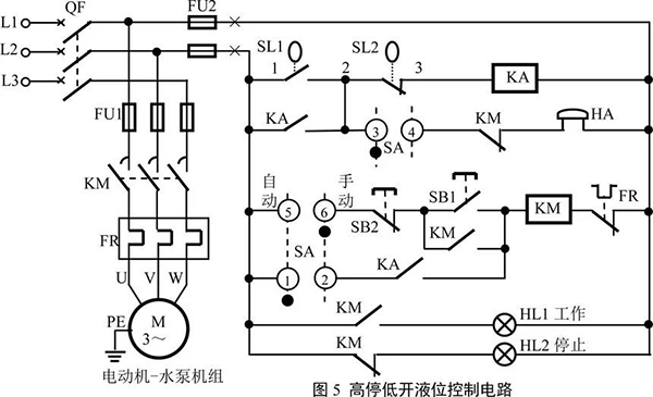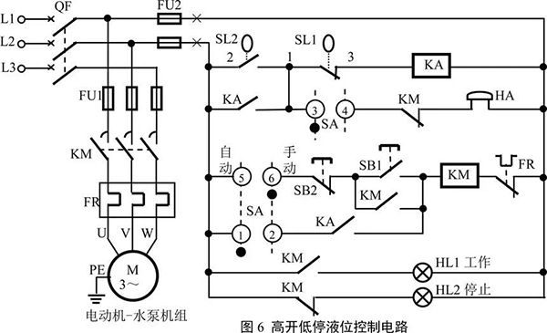 液位的控制,可以是兩個方面:液位低于一定限度時,啟動電動機(jī)-水泵機(jī)組,使液體能得到及時的補(bǔ)充,比如水塔;液位高于或達(dá)到一定限度時,啟動電動機(jī)-水泵機(jī)組,將液體及時排出,比如地道橋積水或污水池等。