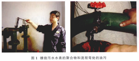 單井的注水量低,更造成污水中的油污和雜質的沉降,附著在水表表體的表而和管匯彎道處(見圖1)。