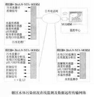 本文介紹的水體污染狀況在線監(jiān)測及數(shù)據遠程傳輸網絡可以連續(xù)、自動監(jiān)測排污口的污水流量和水質參數(shù),既可以分別顯示污水流量的瞬時值/日平均值/月平均值、pH/溶解氧/電導率/濁度/水溫/COD/TOC/NH4-N/**3-N等常規(guī)參數(shù),也可以實時計算污染物排放總量并經公共通信網絡(電話線路)傳輸至區(qū)(縣)、市級的監(jiān)控中心,在轄區(qū)的電子地圖(GIS)上動態(tài)顯示各排污口的*新數(shù)據,是環(huán)保、市政、水利等監(jiān)理部門實時觀測轄區(qū)水質變化情況的現(xiàn)代化管理工具。系統(tǒng)組成如下: