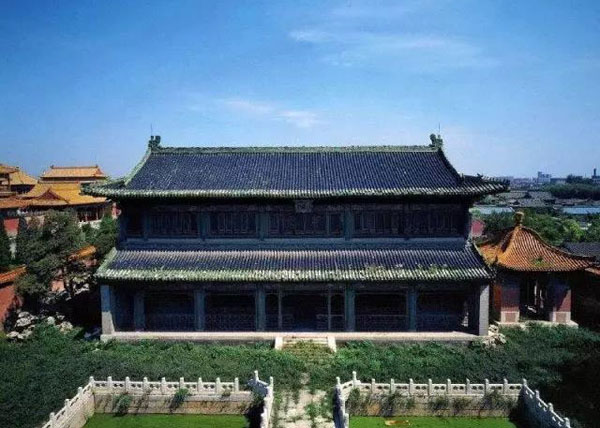 頂,上覆黑琉璃瓦,而以綠琉璃瓦鑲檐頭,營造出皇家藏書樓典雅靜謐肅穆的氣氛。